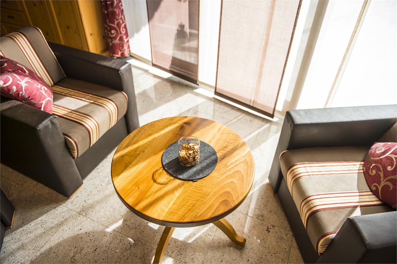 Unsere Ferienwohnung für zwei bis drei Personen bietet Ihnen ausreichend Platz und Ruhe um Ihren Urlaub in Dorf Tirol genießen zu können. Im separaten Wohnraum befindet sich eine komplett ausgestattete Küche mit Induktionsherd, Kühlschrank (mit Gefrier
